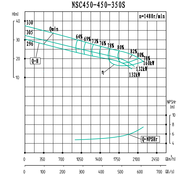 NSC600-450系列卧式单级水平中开式双吸离心泵性能曲线图···