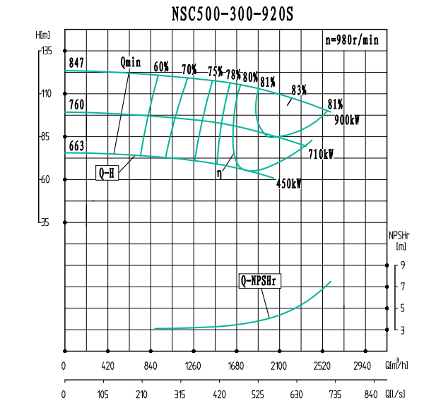 NSC500-300系列卧式单级水平中开式双吸离心泵性能曲线图···