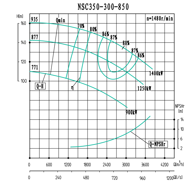 NSC800-700系列卧式单级水平中开式双吸离心泵性能曲线图···