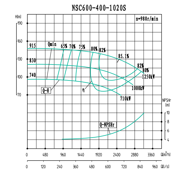 NSC700-600系列卧式单级水平中开式双吸离心泵性能曲线图···