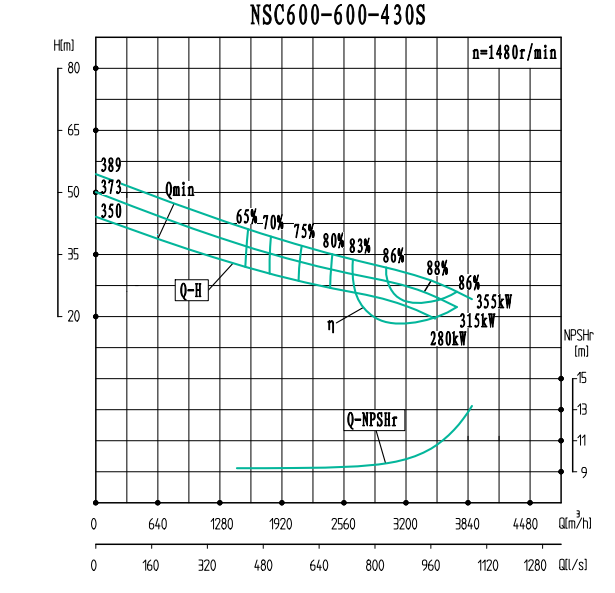 NSC600-400系列卧式单级水平中开式双吸离心泵性能曲线图···