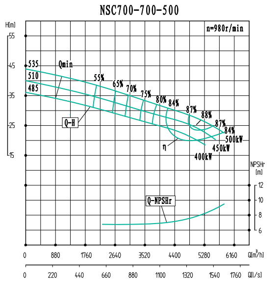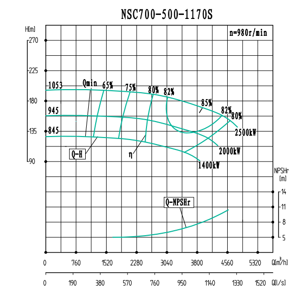 NSC700-500系列卧式单级水平中开式双吸离心泵性能曲线图···