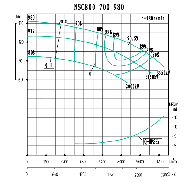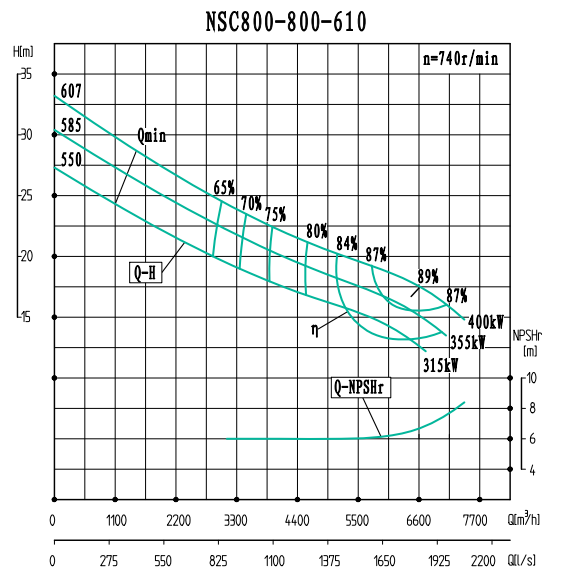NSC800-800-610系列卧式单级水平中开式双吸离心泵性能曲线图···