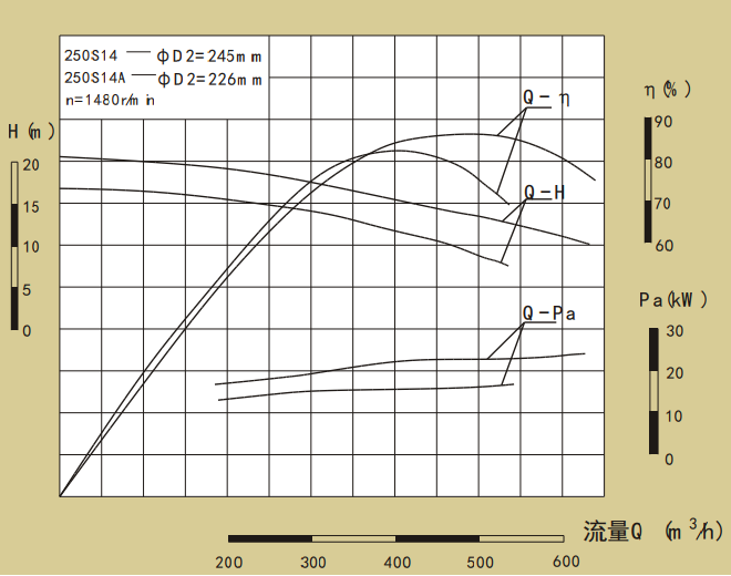 250S系列卧式单级水平中开式双吸离心泵性能曲线图···