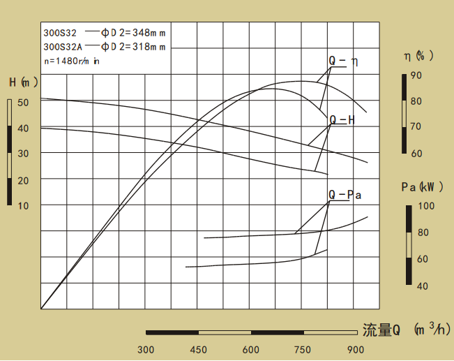 300S系列卧式单级水平中开式双吸离心泵性能曲线图···