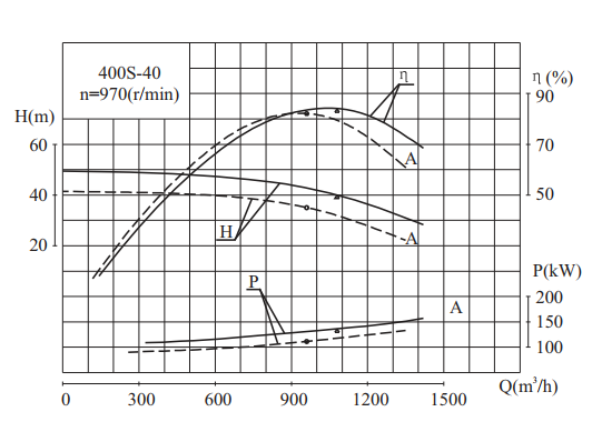 400S系列卧式单级水平中开式双吸离心泵性能曲线图···
