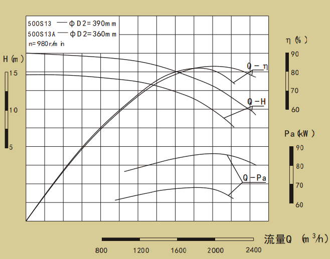 500S系列卧式单级水平中开式双吸离心泵性能曲线图···