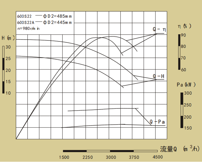 600S系列卧式单级水平中开式双吸离心泵性能曲线图···