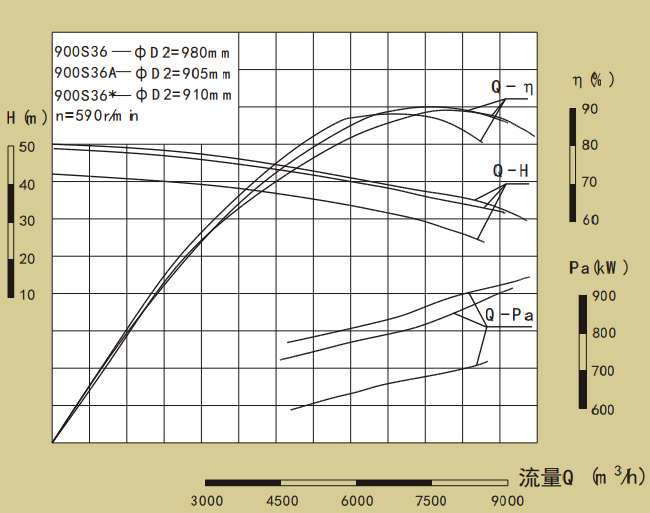 900S系列卧式单级水平中开式双吸离心泵性能曲线图···