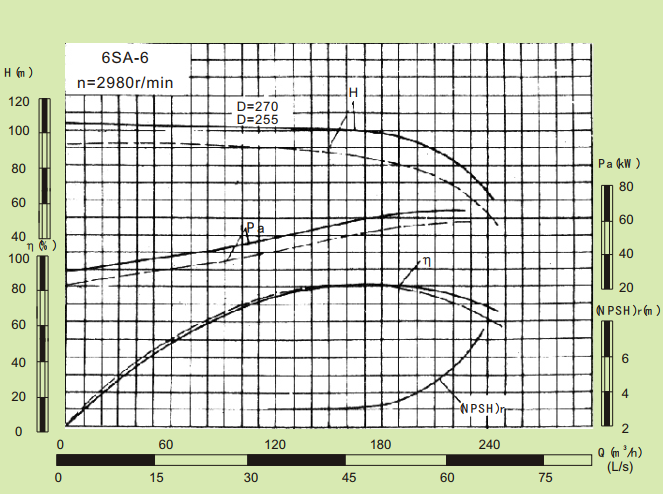 6SA卧式水平中开式单级双吸离心泵性能曲线图···